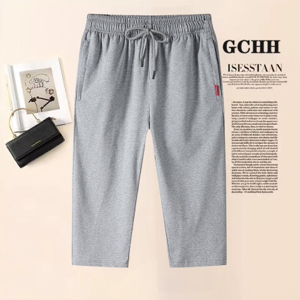 夏季薄款七分裤女直筒运动裤纯棉大码浅灰胖MM加肥加大休闲中裤女