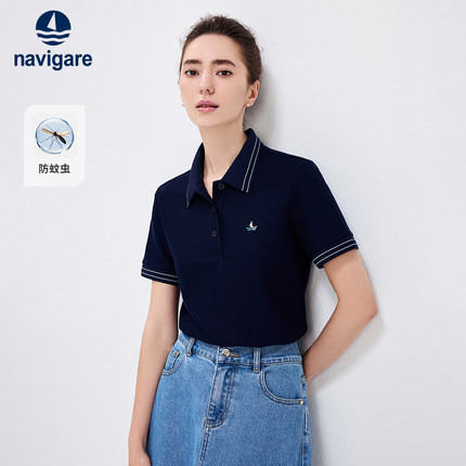 Navigare意大利小帆船夏季POLO衫翻领上衣女士休闲短袖T恤