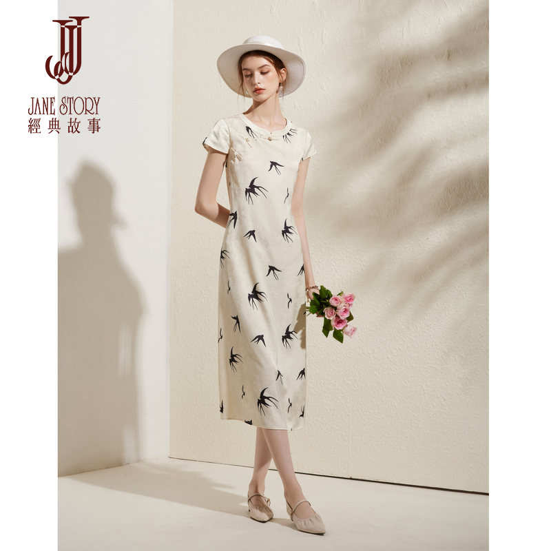 2025新款高级感缎面裙子别致新中式连衣裙女夏气质季小个子长裙