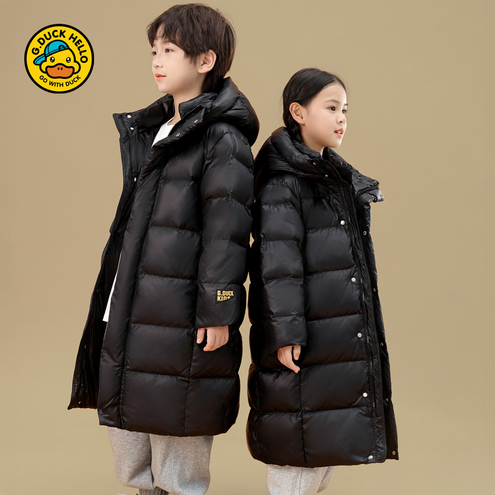 小黄鸭儿童长款羽绒服男女童东北极寒加厚过膝厚外套中小学生冬装