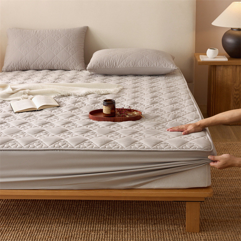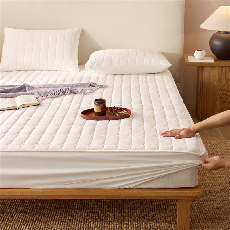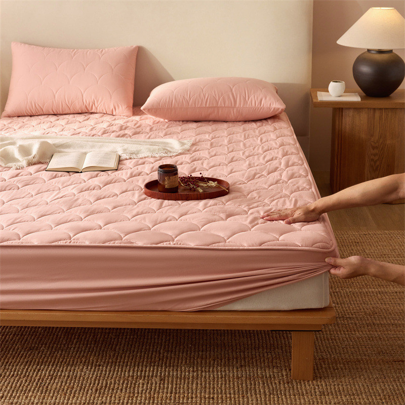 简约纯色全棉夹棉绗缝床笠家用批发保护套防滑床单床罩席梦思床垫