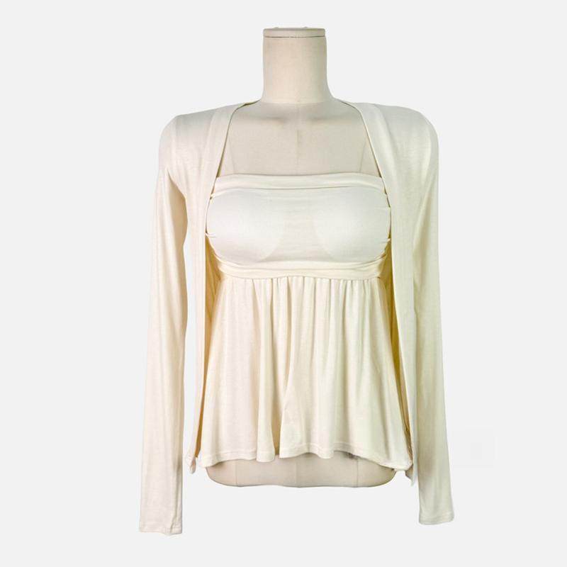 韩国东大门女装新款气质温柔修身无袖带垫MO胸T恤长袖开衫两件套