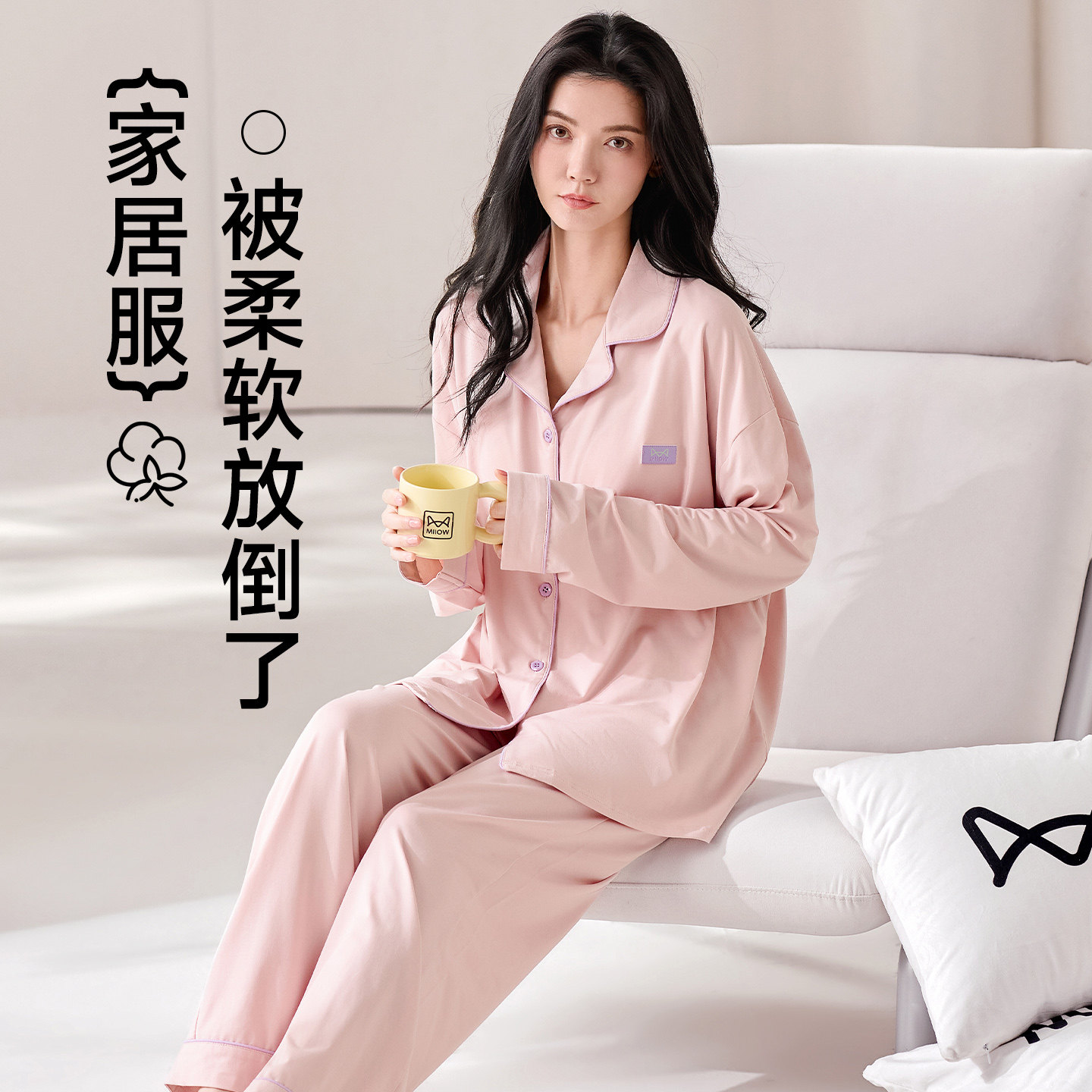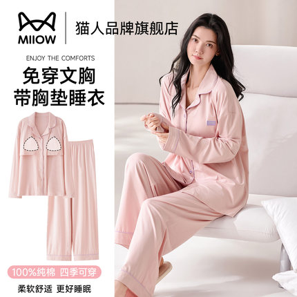 猫人100%棉睡衣2026春夏季新款自带胸垫甜美可外穿大码家居服女款