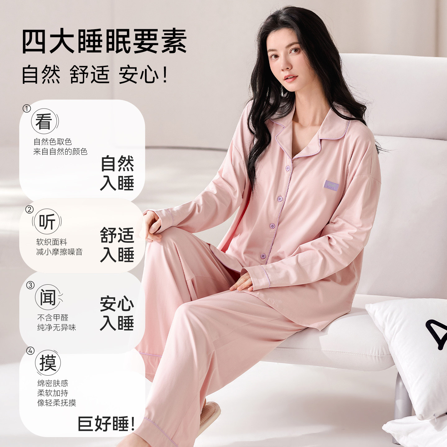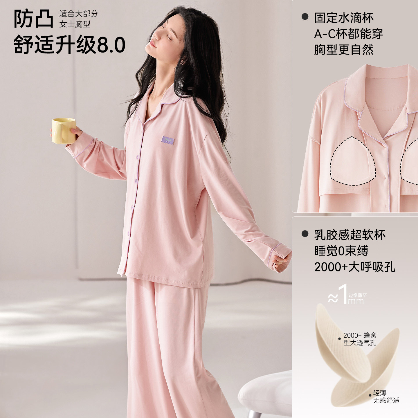 猫人100%棉睡衣自带胸垫甜美软糯