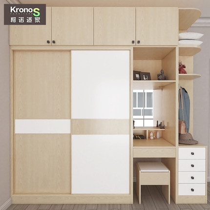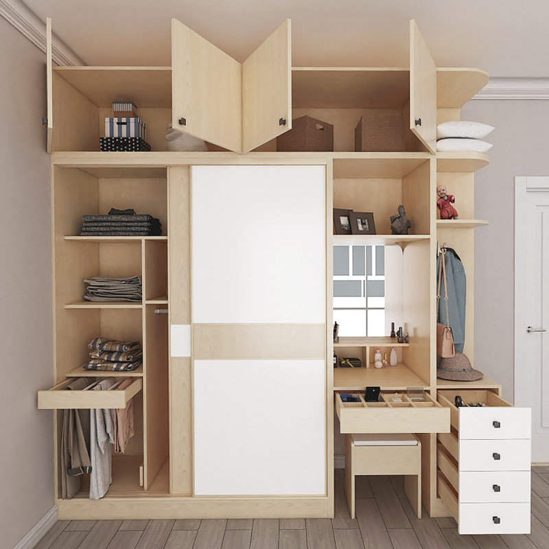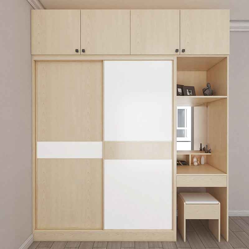 推拉门衣柜简约现代小户型带梳妆台组合卧室家用整体组装两门衣橱