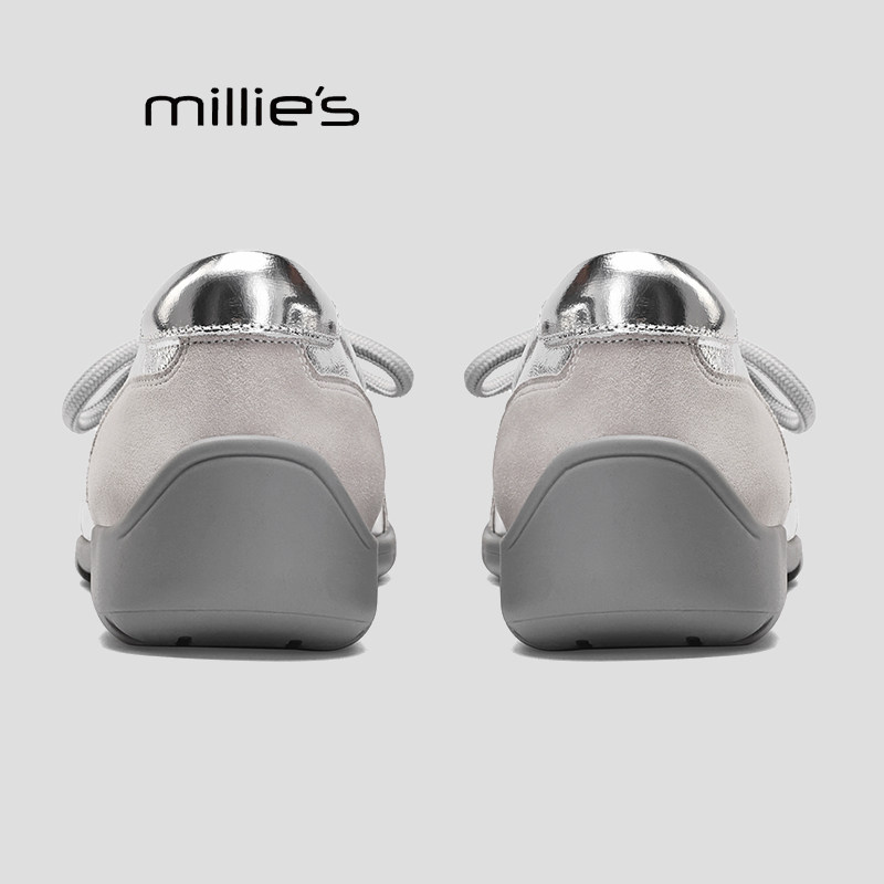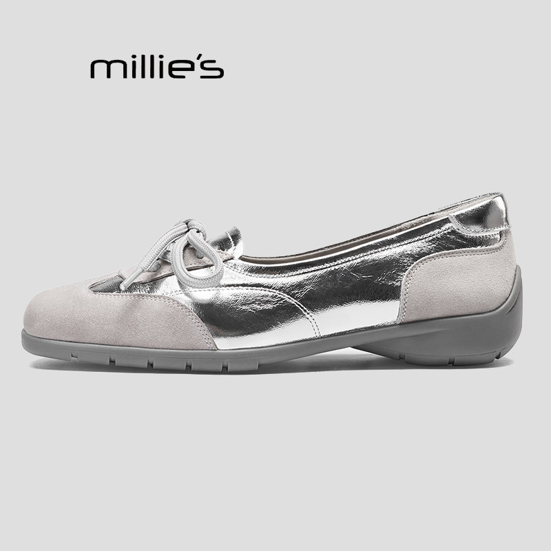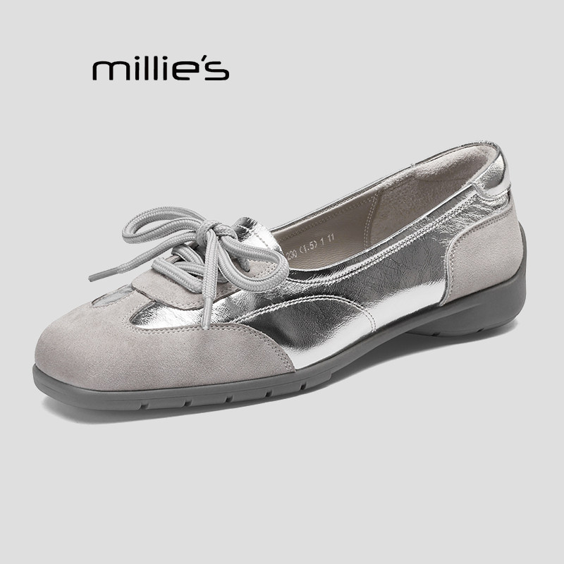 MILLIE'S/妙丽百搭粗跟舒适单鞋女款中跟休闲系带浅口甜美春款Q