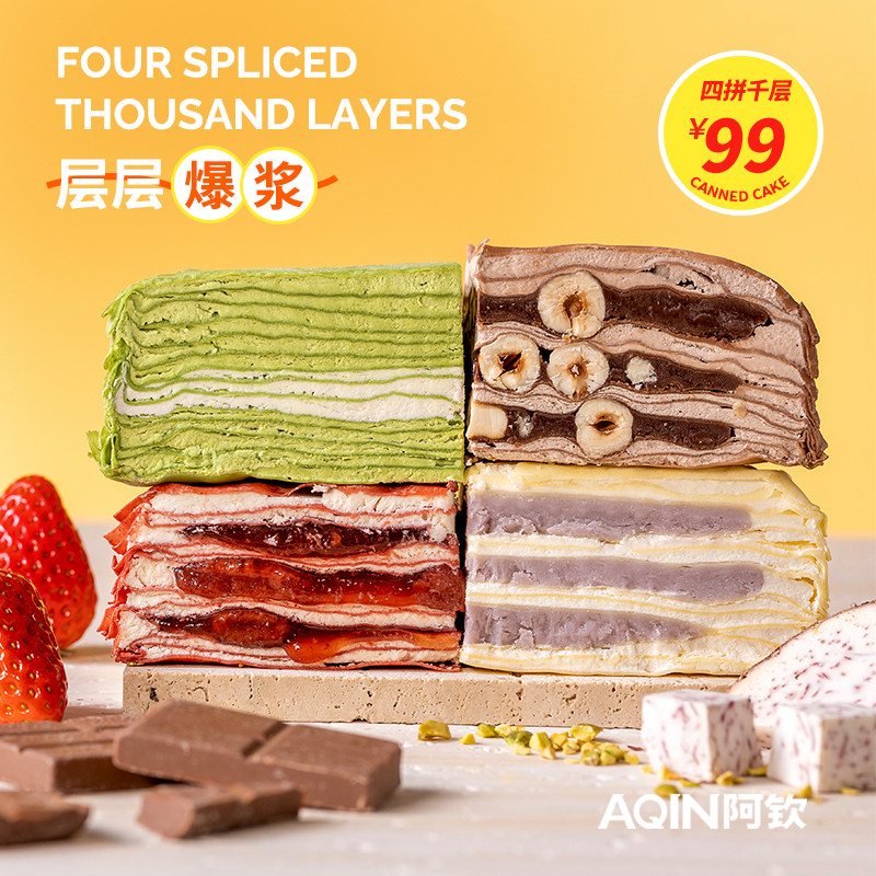 AQIN阿钦六拼千层蛋糕动物奶油榴莲抹茶提拉米苏生日蛋糕甜品礼物