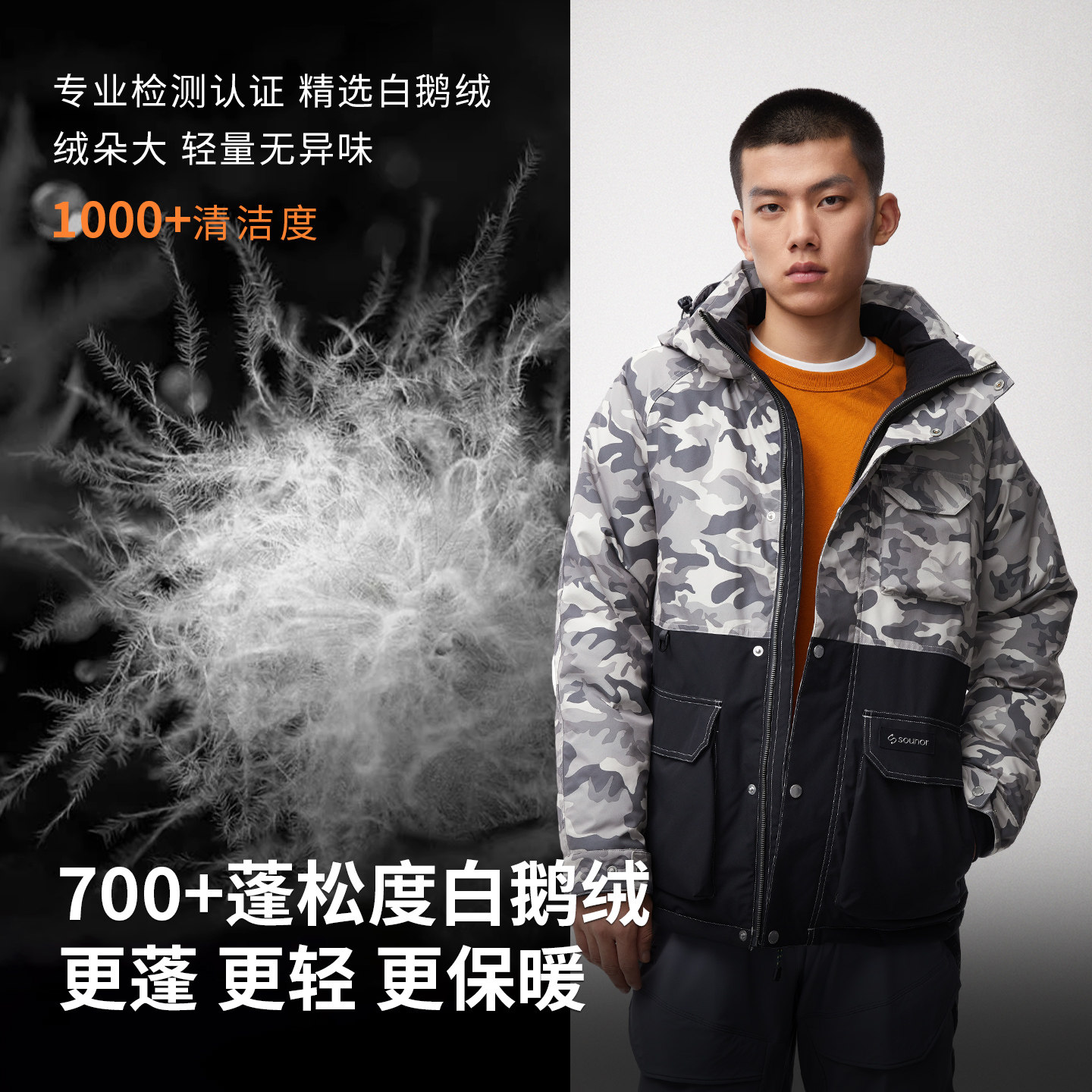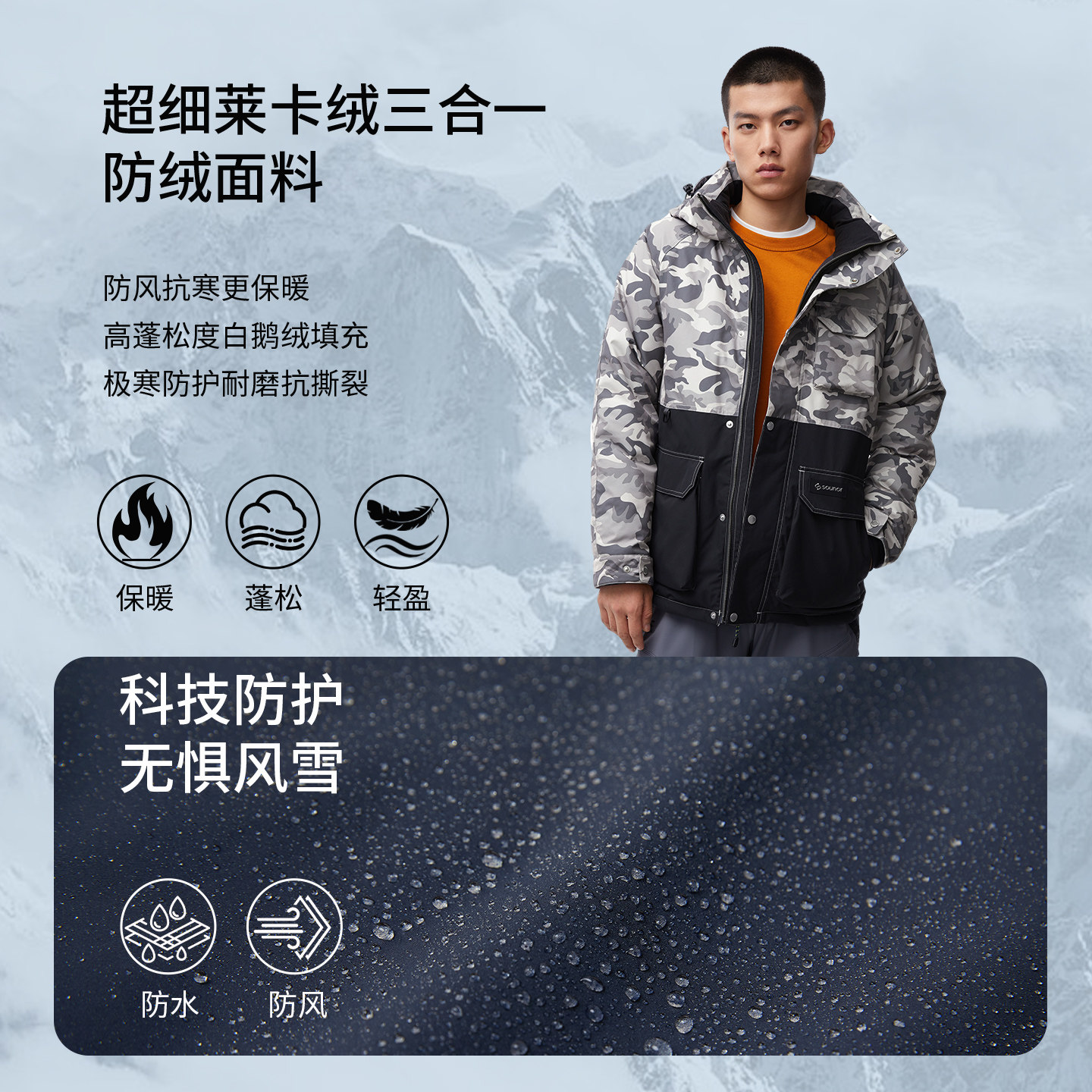 君羽700蓬白鹅绒羽绒服男士短款冬季保暖时尚迷彩鹅绒服男外套021