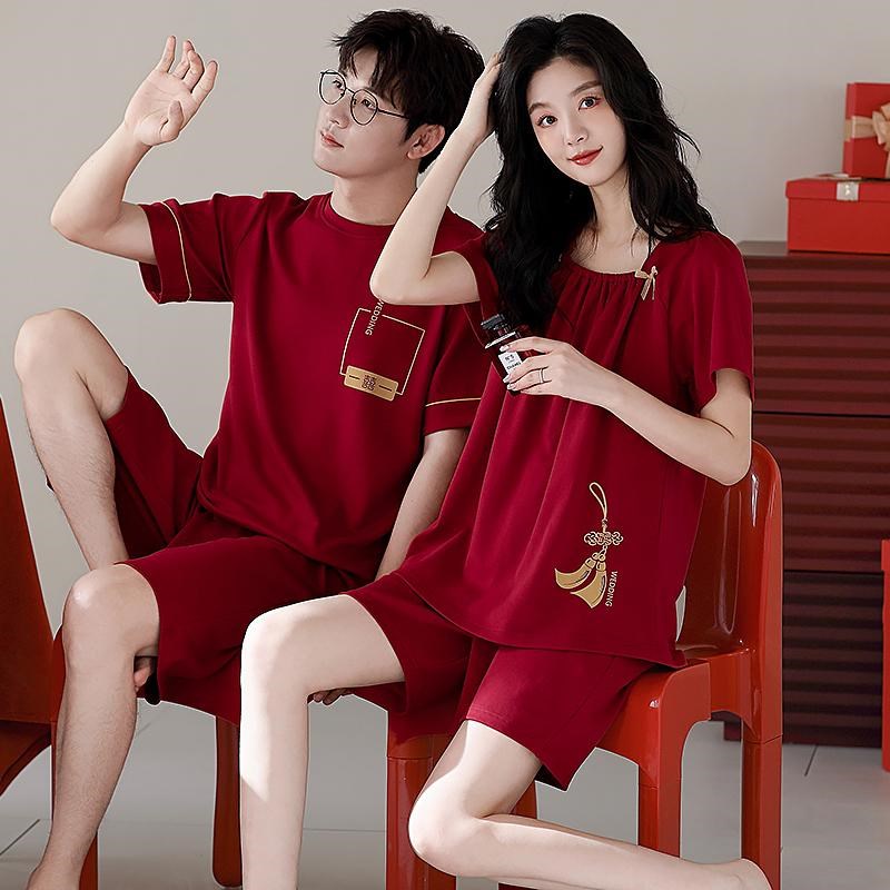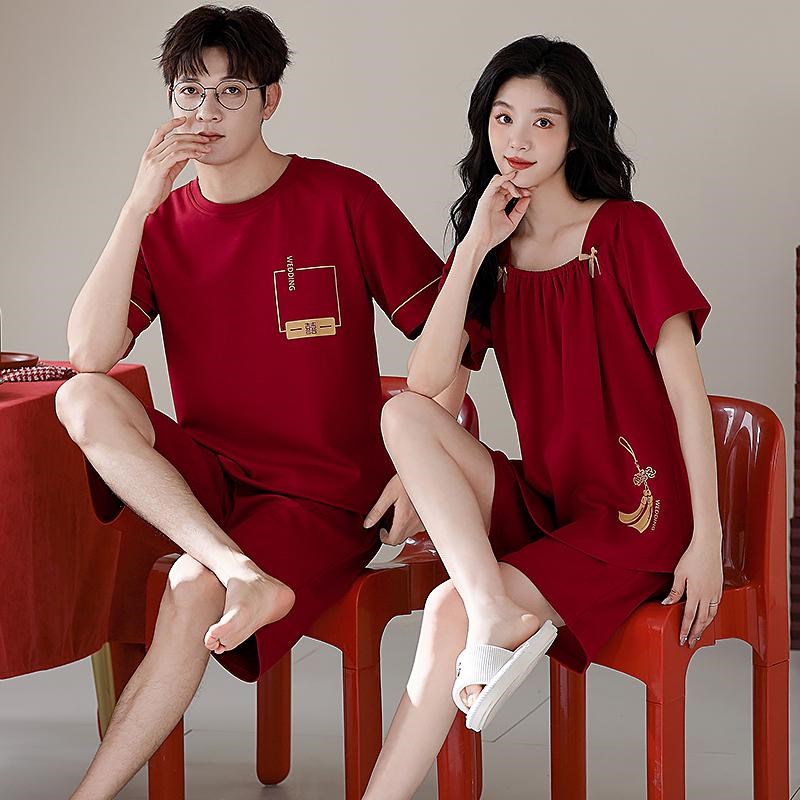情侣睡衣夏季纯棉短袖新婚结婚本命年大红喜庆可外穿Z家居服套装