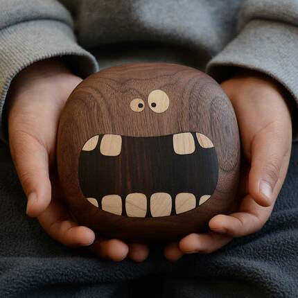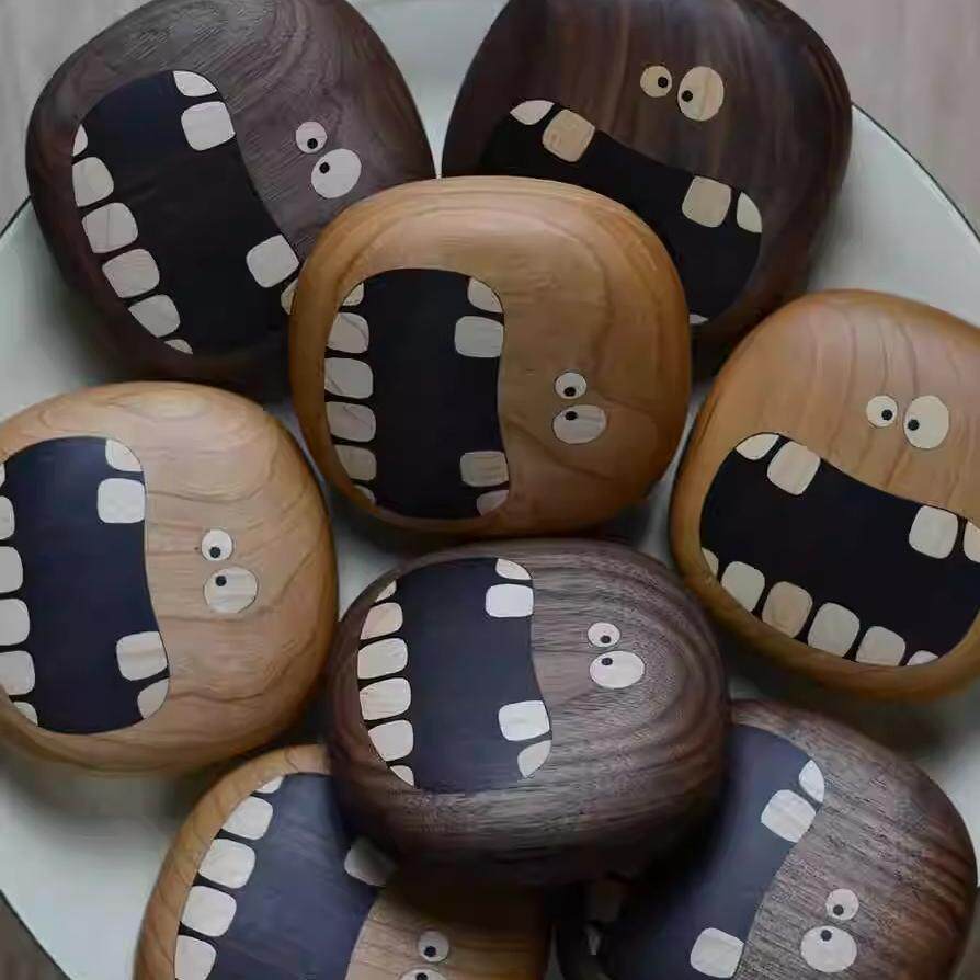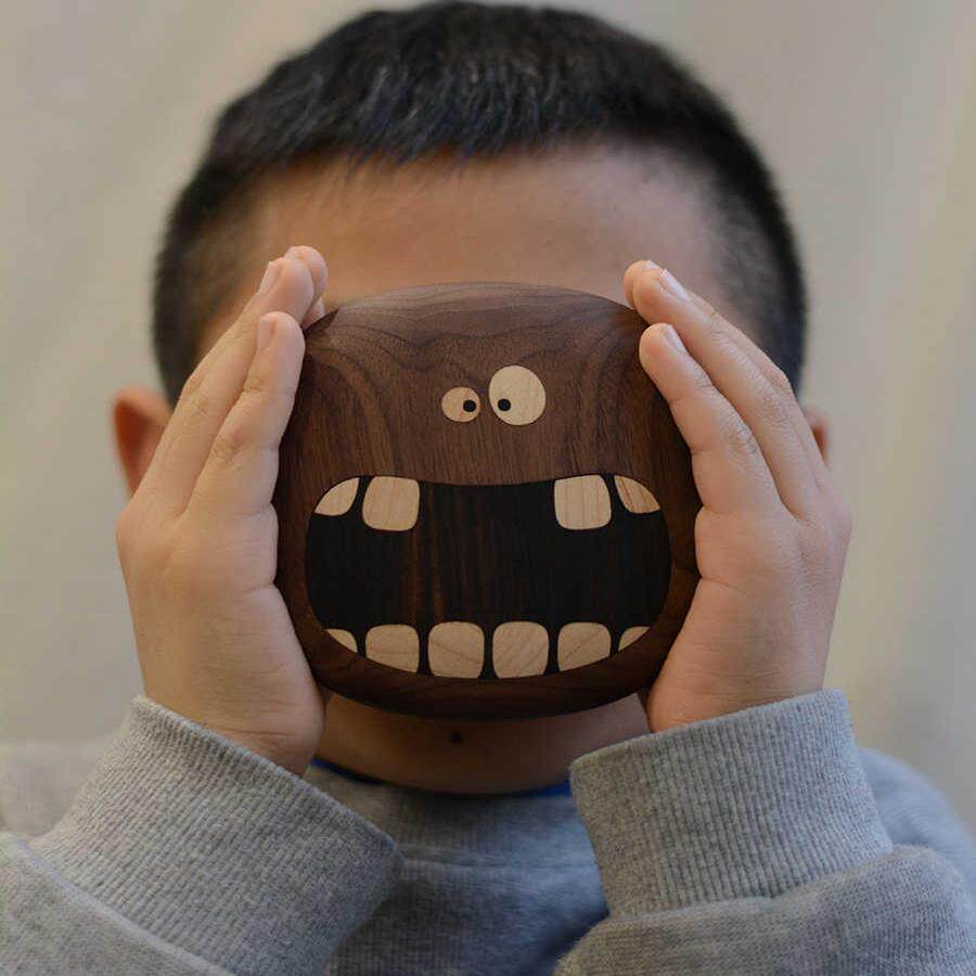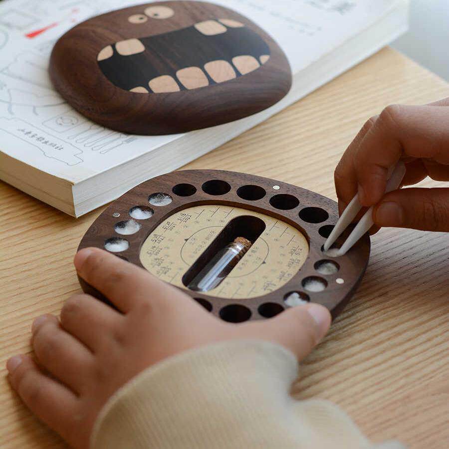 创意可爱小怪兽实木黑胡桃木质乳牙盒儿童牙齿收纳盒生日礼品