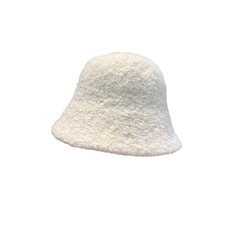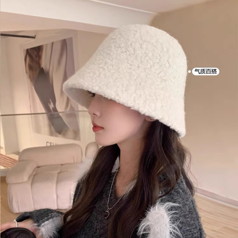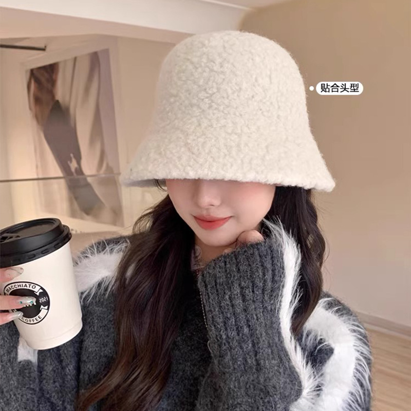 帽子女秋冬季羊羔毛渔夫帽黑色素颜显脸小水桶帽大脸保暖毛绒盆帽