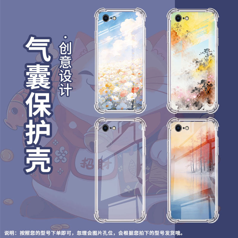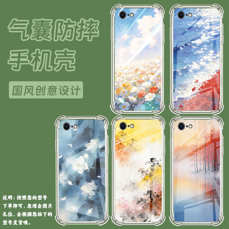 适用苹果5s气囊手机壳苹果6全包边苹果6splus四角防摔iphone8手机壳a1442男女款下雪时松树中国风保护套