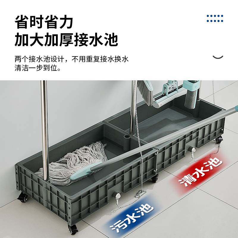 不锈钢清洁工具j置物架移动落地拖把架阳台保洁收纳扫把墩布沥水