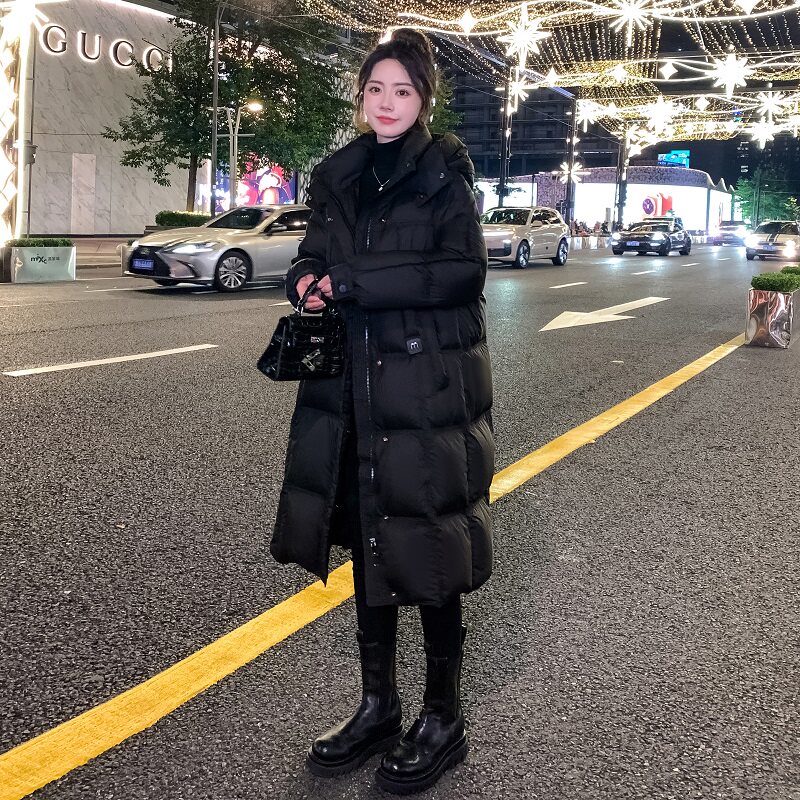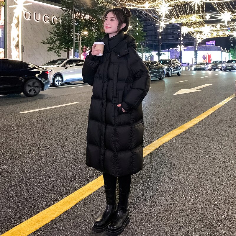 高端长款黑色羽绒服女2025新款冬季加厚宽松90白鸭绒保暖过膝外套