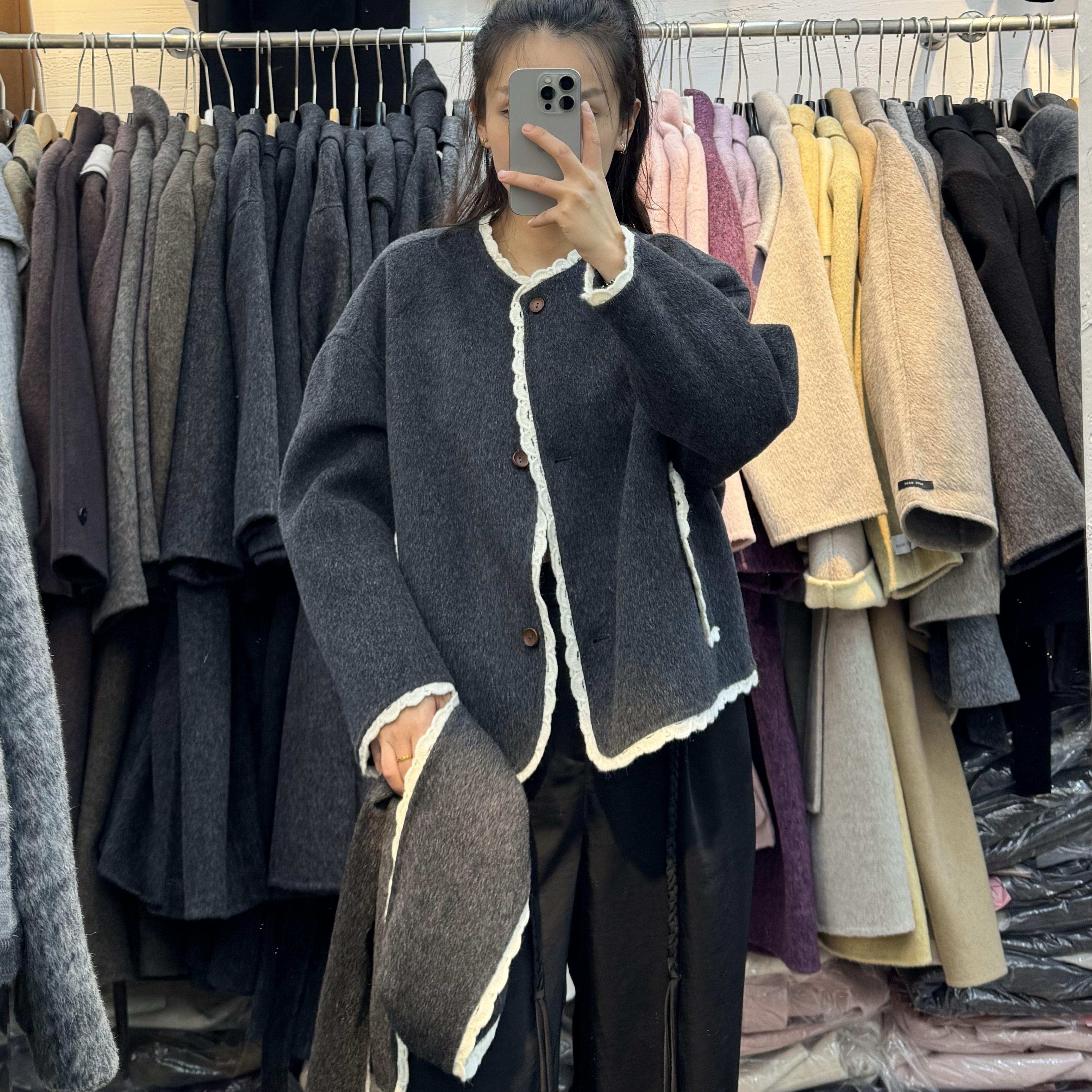 小香风双面羊绒大衣短款2025女秋冬新款羊毛呢围巾圆领毛呢外套