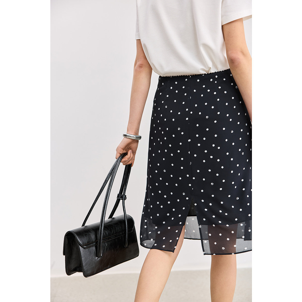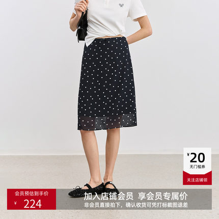 LILY秋新款法式复古波点蕾丝高腰休闲通勤百搭直筒裙半身裙女
