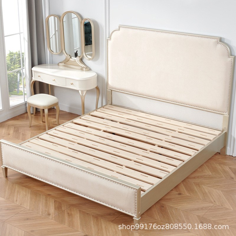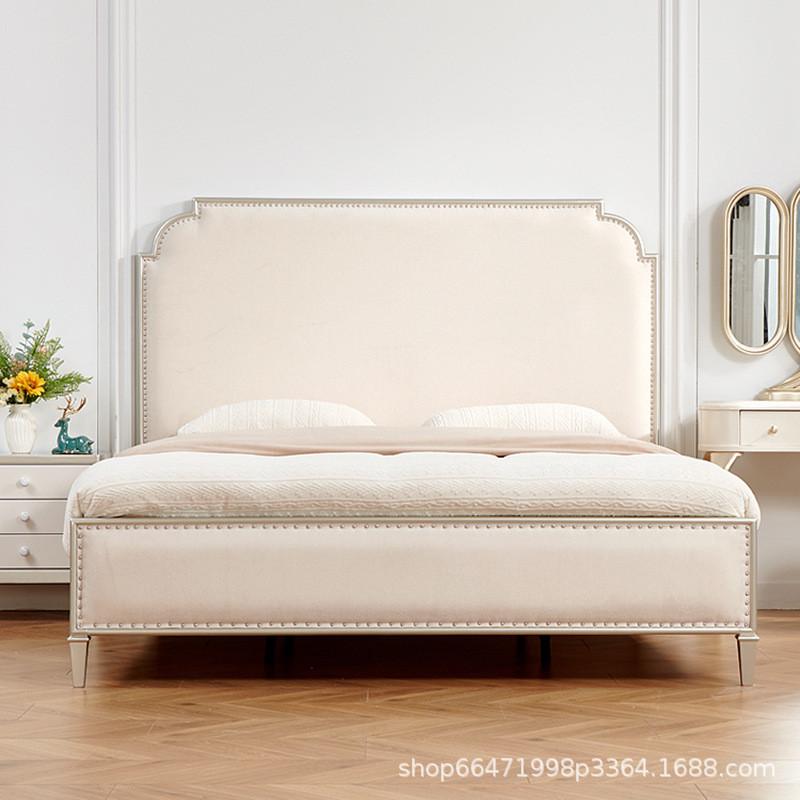 美式轻奢实木床现代简约1.8米主卧双人床奢华绒布婚床法式公主床