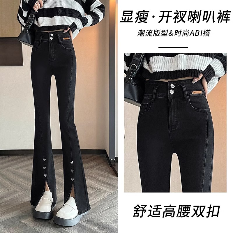 爱心微喇牛仔裤女春秋2025年新款爆款高腰显瘦开叉小个子喇叭裤子
