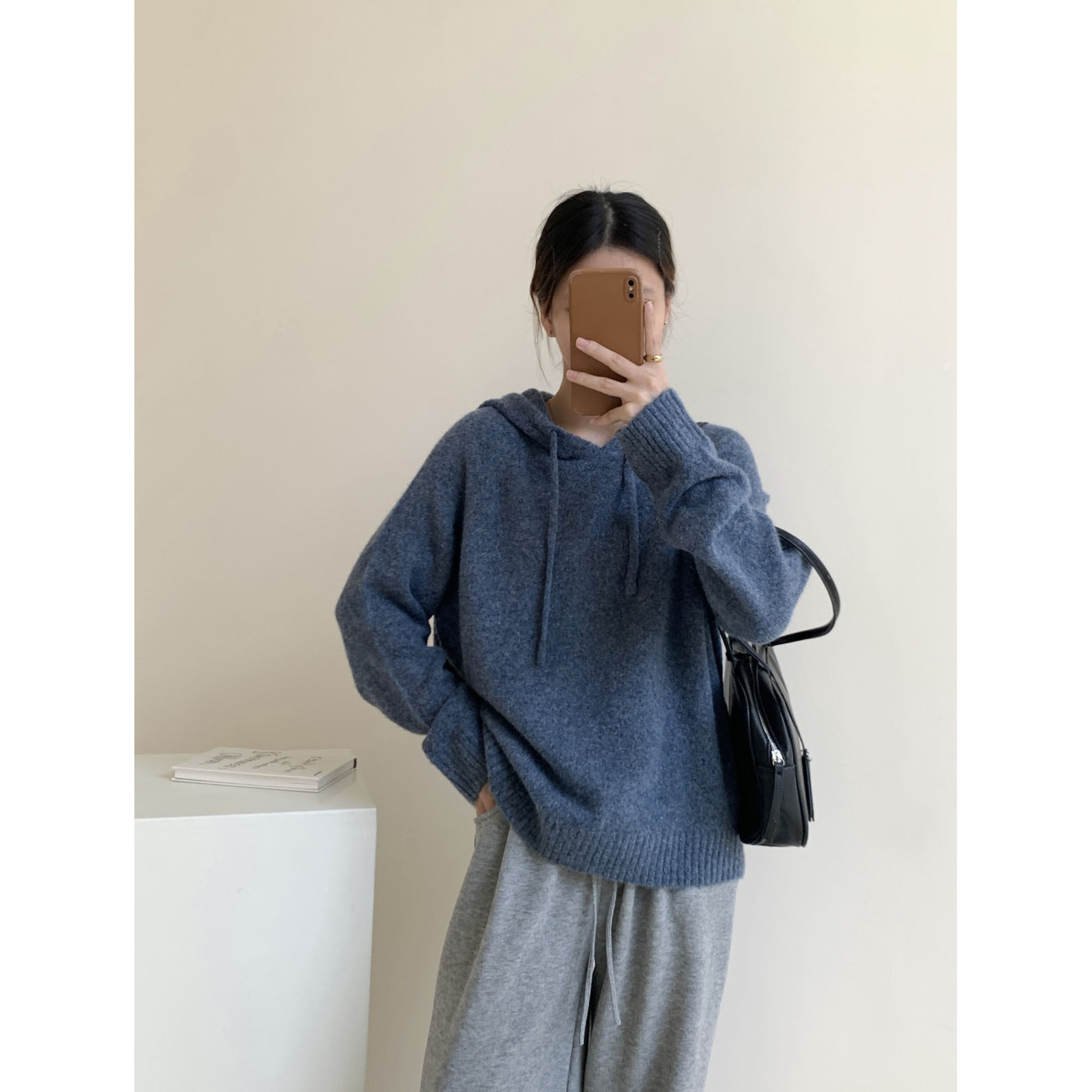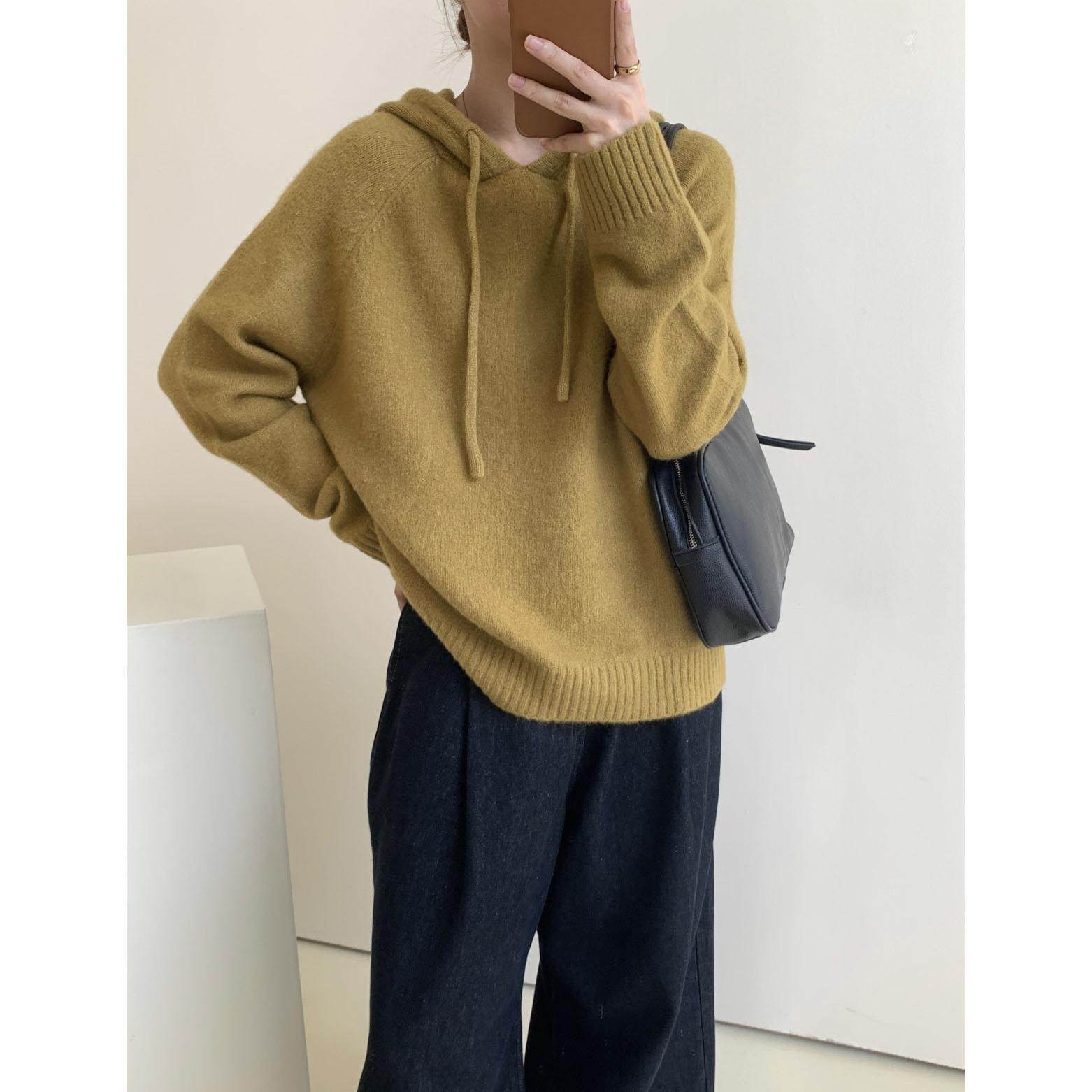 糯叽叽暖绒连帽套头毛衣2024秋冬季温暖慵懒百搭宽松毛衣外套女