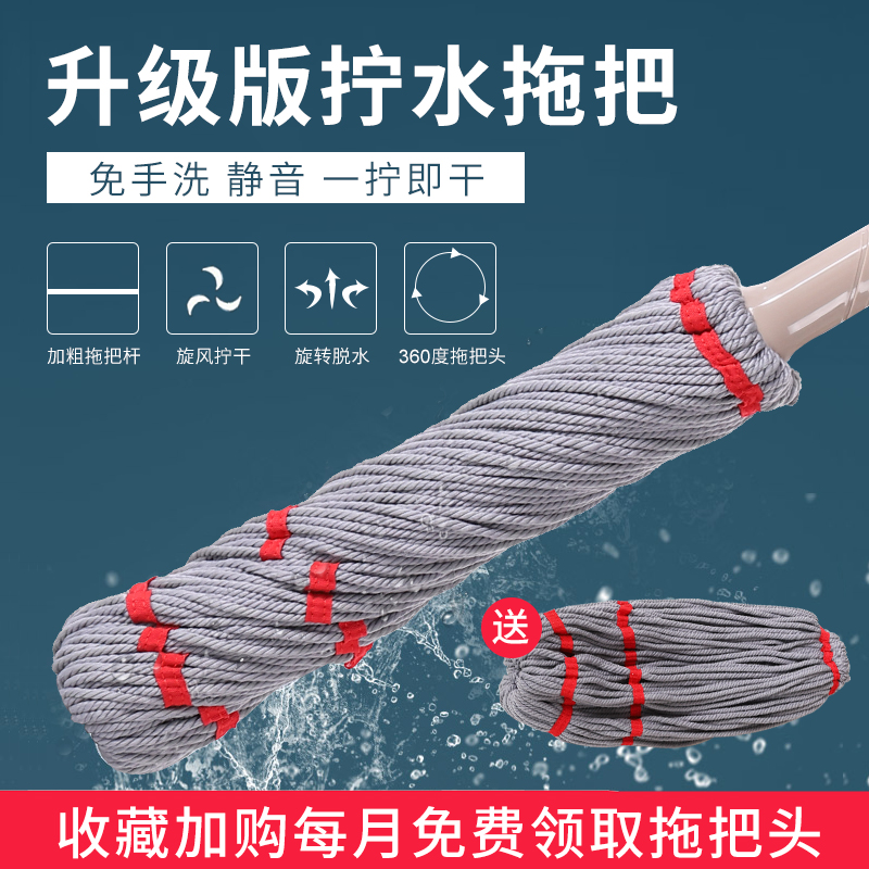 自拧水旋转拖把头家用懒人免手洗老式布条拖布吸水墩布挤水地拖把