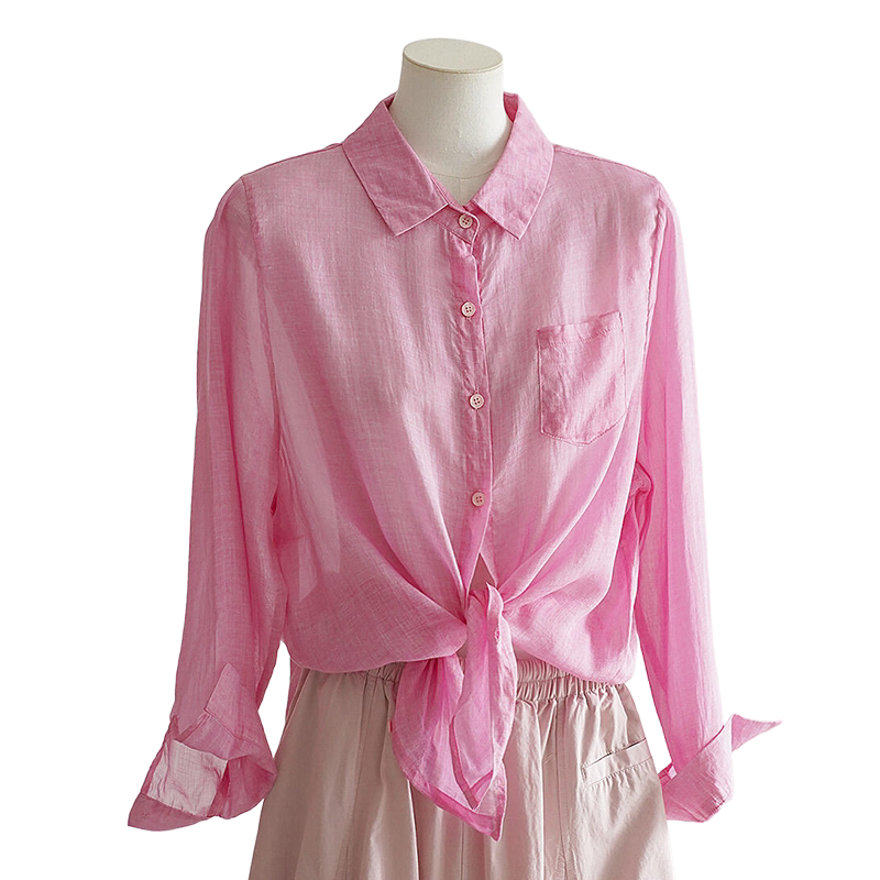 减龄粉紫色苎麻单排扣翻领衬衫春