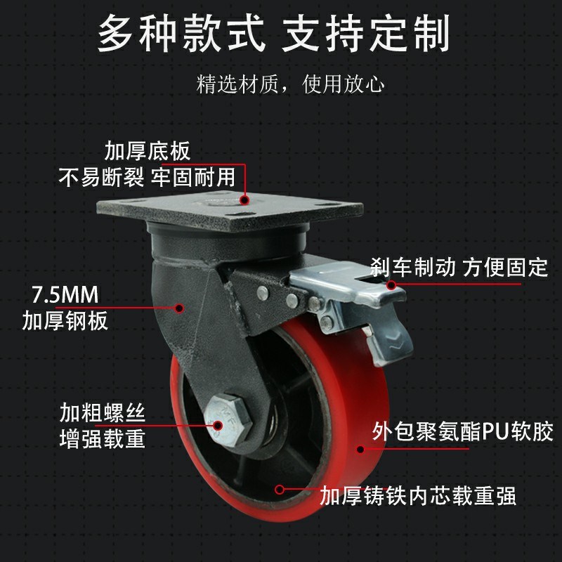 超重型脚轮4e寸5寸6寸8寸聚氨酯铁芯pu轮物流推车轮载重1吨万向轮
