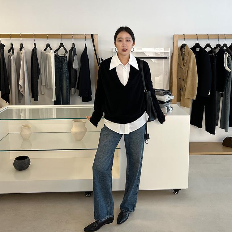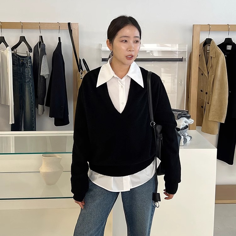 widelia陈姬儿秋冬韩版简约质感V领羊毛针织衫百搭纯色毛衣07199
