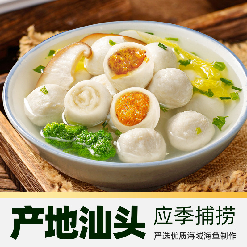 臻选潮汕鱼丸三拼组合鱼籽鱼丸咸蛋黄包心鱼丸1500g/内6包