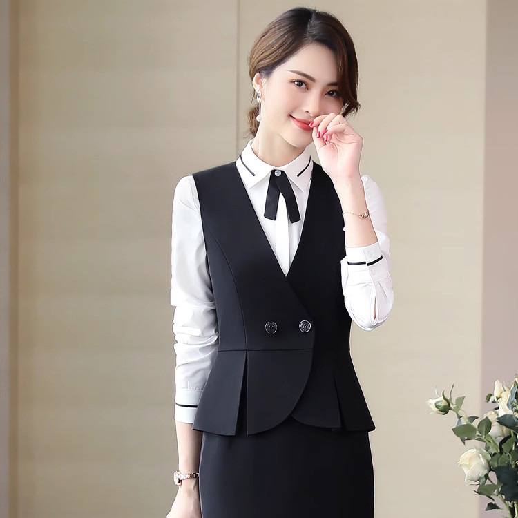 2025新款春秋黑色职业装西装马甲套装女款女士工装马夹三件套外穿