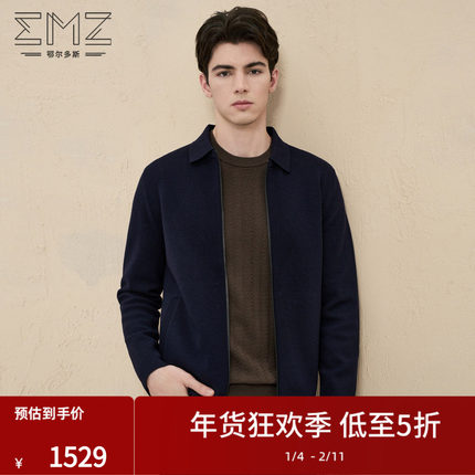 【超轻羊毛】emz鄂尔多斯秋冬男士休闲保暖翻领针织开衫夹克外套