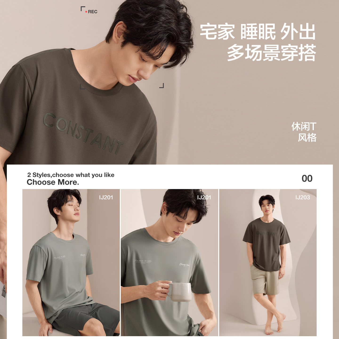 红豆男士睡衣短袖短裤夏季棉莫代尔凉感T恤A类休闲外穿家居服套装