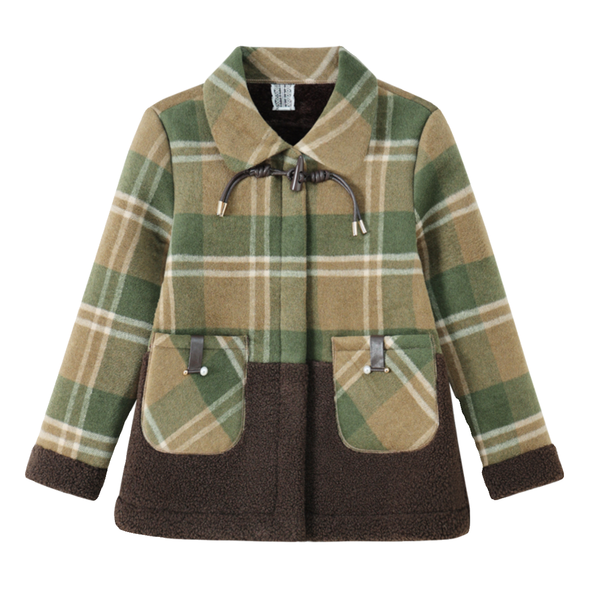 妈妈装冬季时尚格子加绒毛呢外套