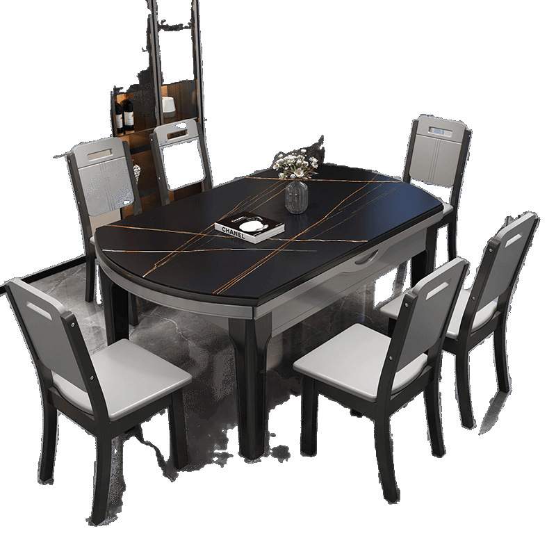 岩板餐桌椅组合小户型家用吃饭桌子椅子实木餐桌可伸缩折叠