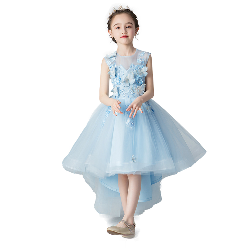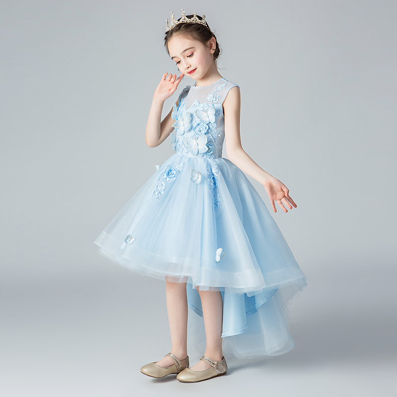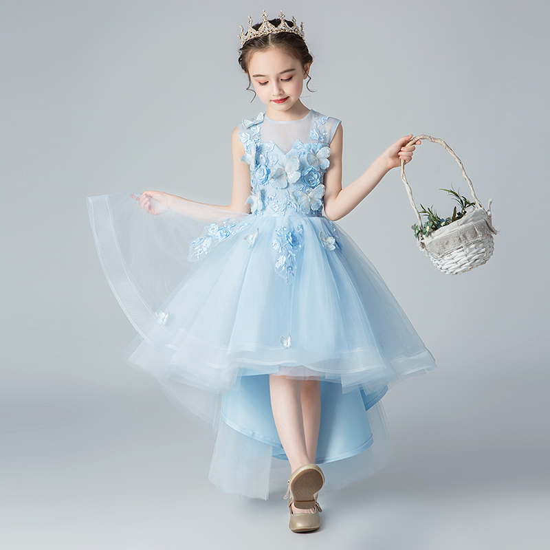 女童礼服公主裙生日蓝色小女孩花童婚纱儿童主持人钢琴演出服夏季