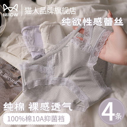 猫人女士内裤纯棉抗菌裆2025新款蕾丝边无痕透气中腰包臀三角短裤
