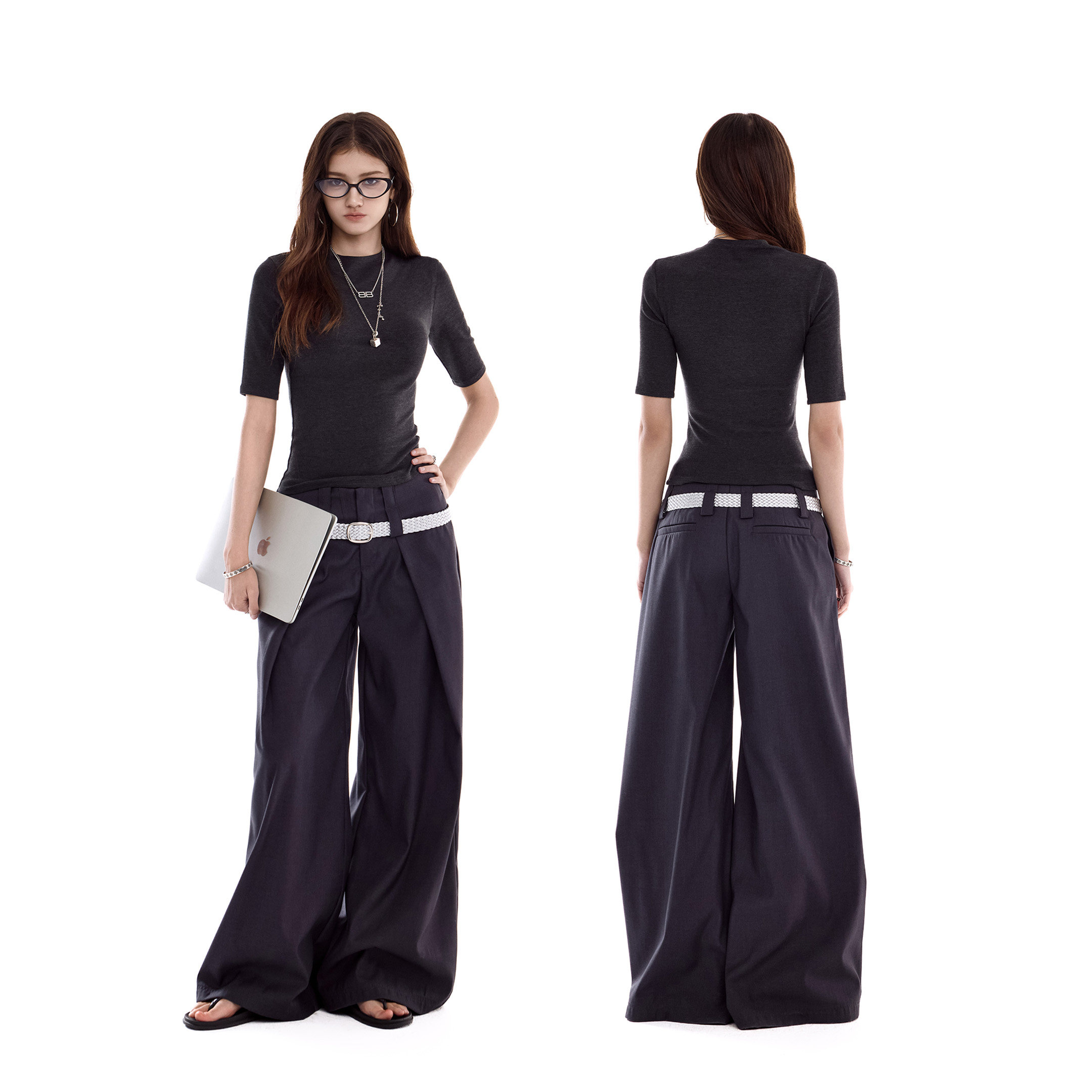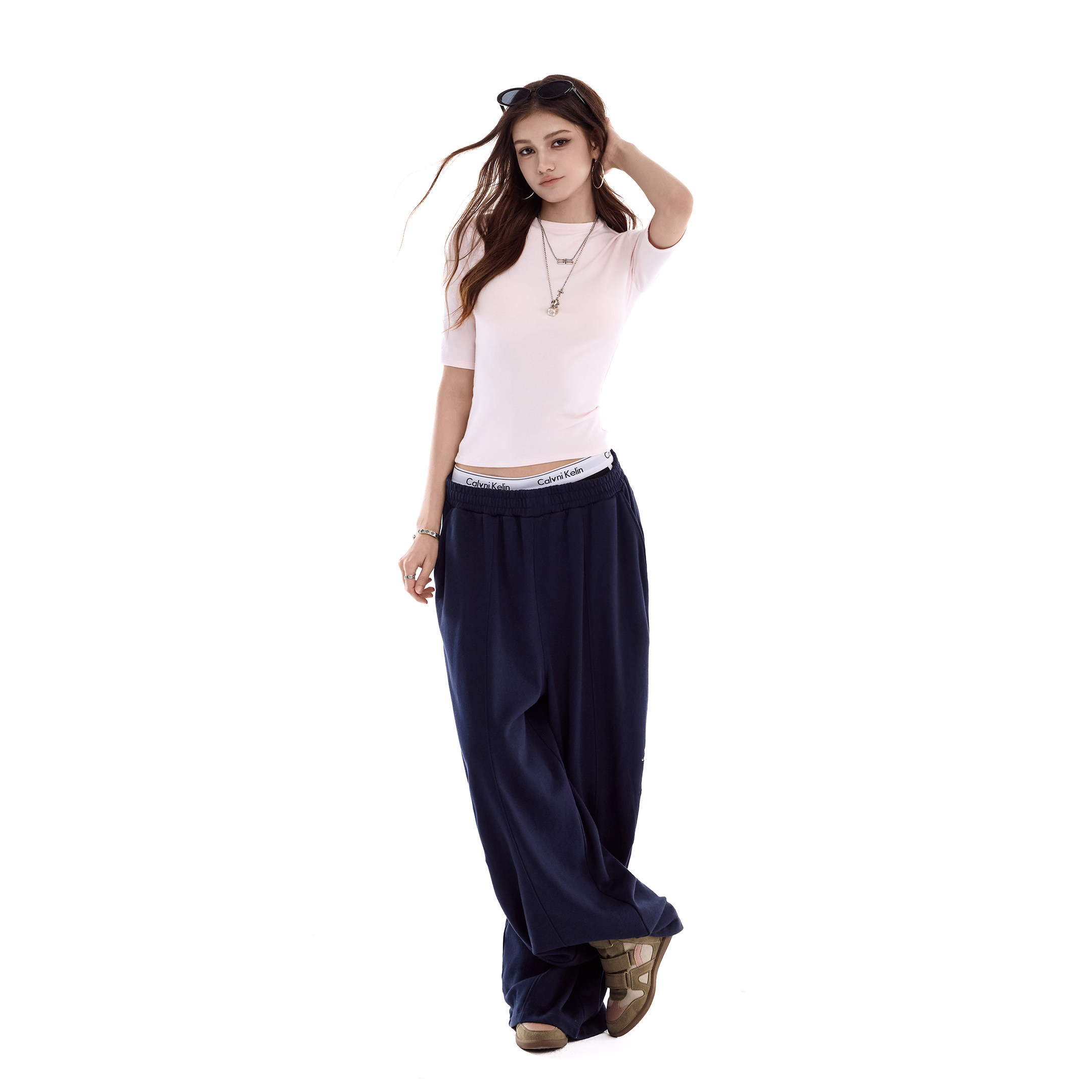 ICH MODE 美式圆领修身短袖T恤女2026新款夏季中袖正肩上衣打底t