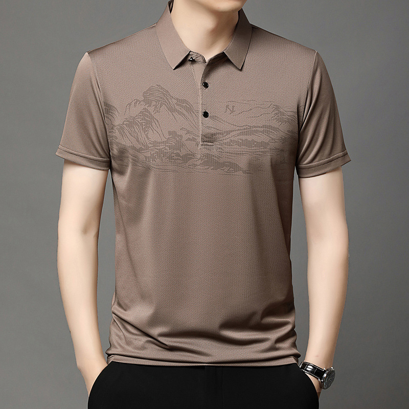 夏季男士冰丝t恤中老年爸爸夏装翻领POLO衫男式薄款T恤打底衫
