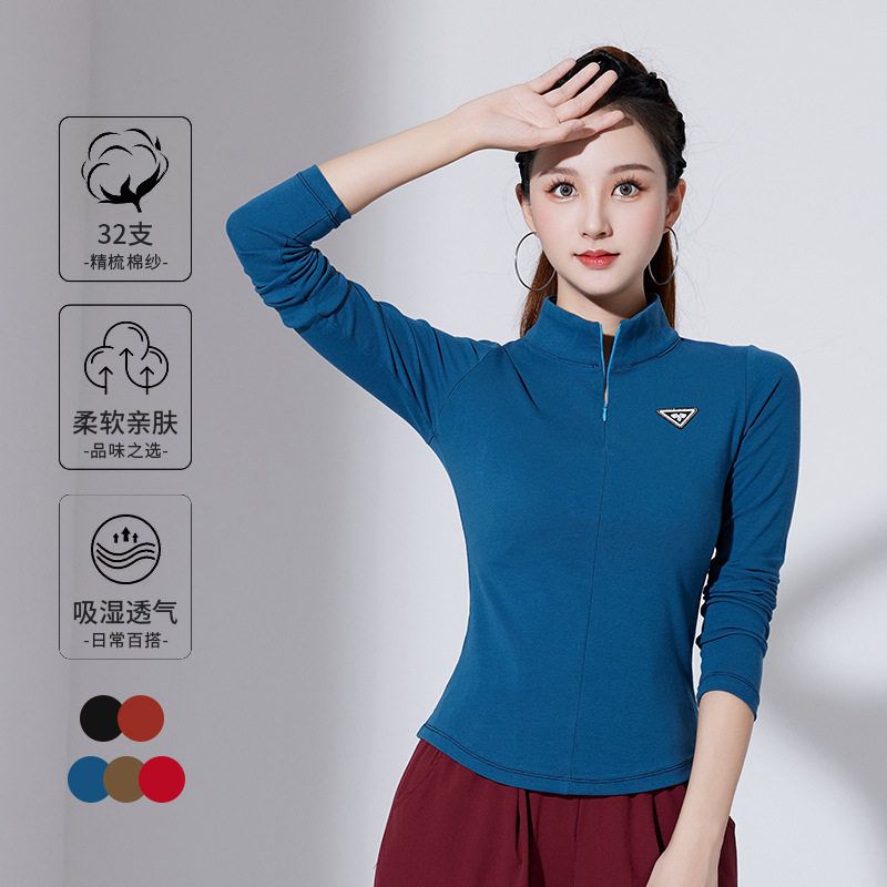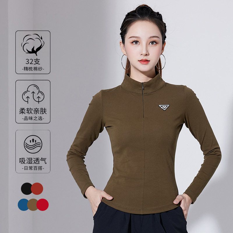 婷姿媄秋冬广场舞服装新款半拉链上衣炸街网红修身打底衫团体运动
