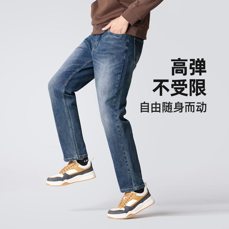 骆驼男装休闲牛仔裤男士2025新款秋冬季弹力修身直筒牛仔长裤子