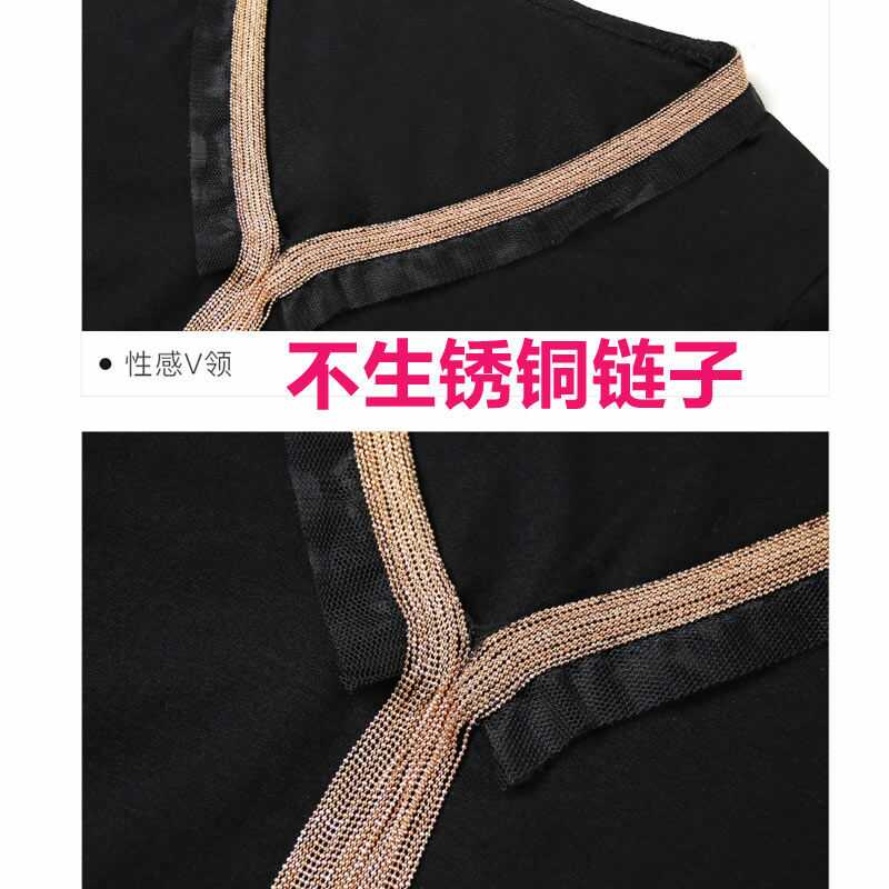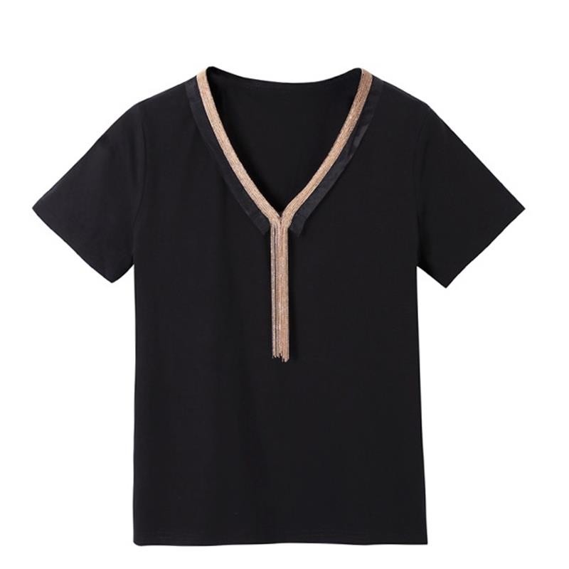 舒适莫代尔棉新款韩版时尚流苏链条V领短袖T恤女显瘦洋气修身上衣