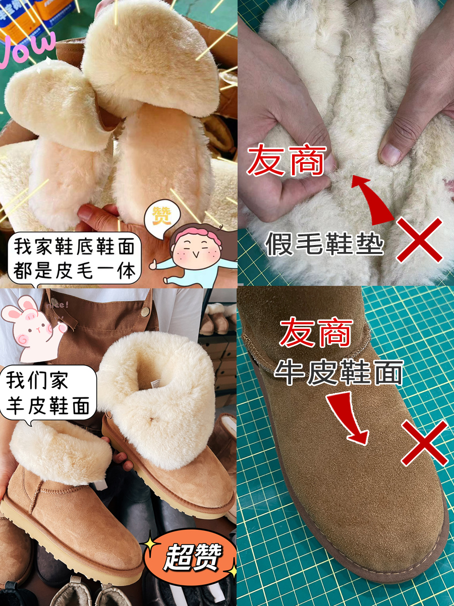 河南桑坡雪地靴女羊皮毛一体冬周冬雨同款新款男短筒真皮真毛厚底