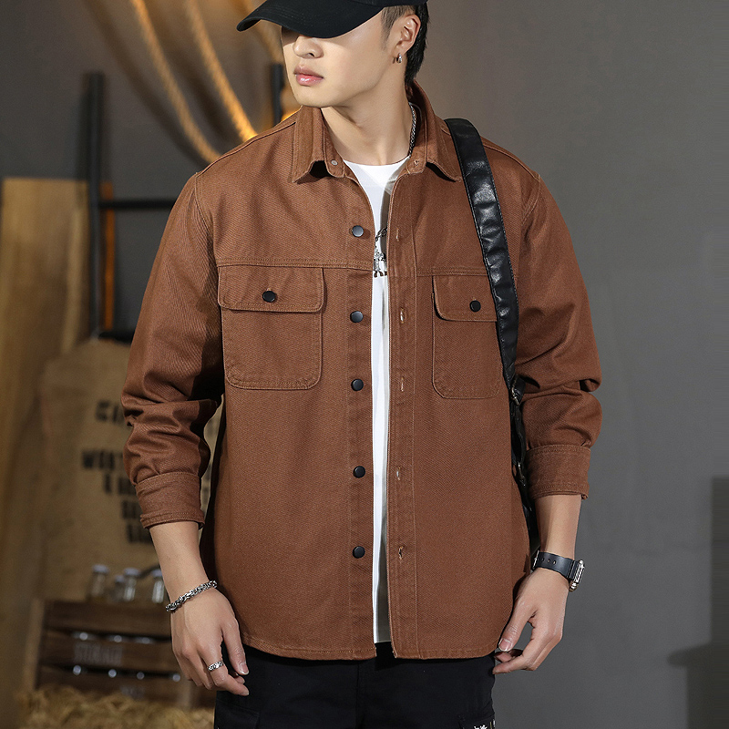春款美式复古牛仔外套男大码2024新款潮流休闲春季工装翻领夹克男
