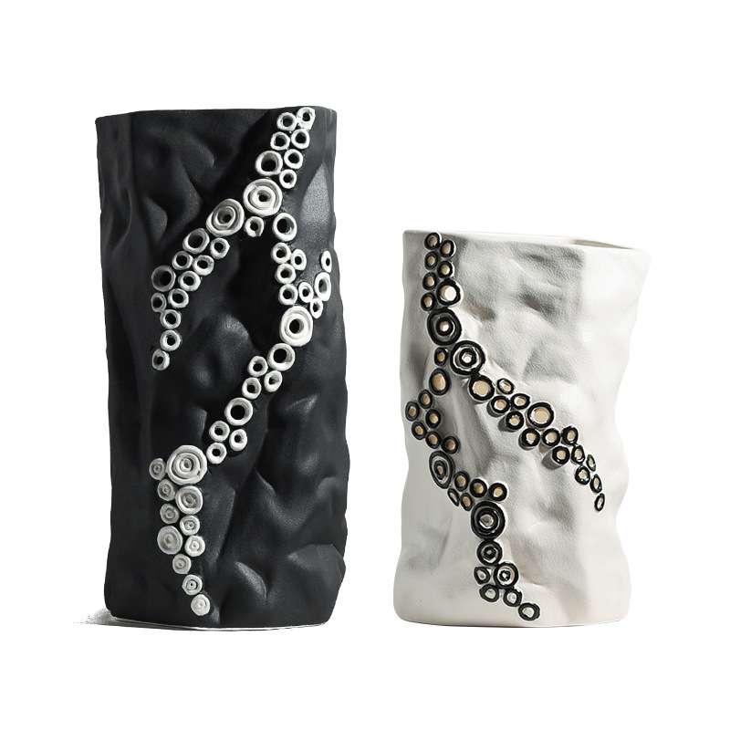 陶瓷花瓶手工雕空黑白样板房软装饰品干花鲜花插花花器客厅摆件