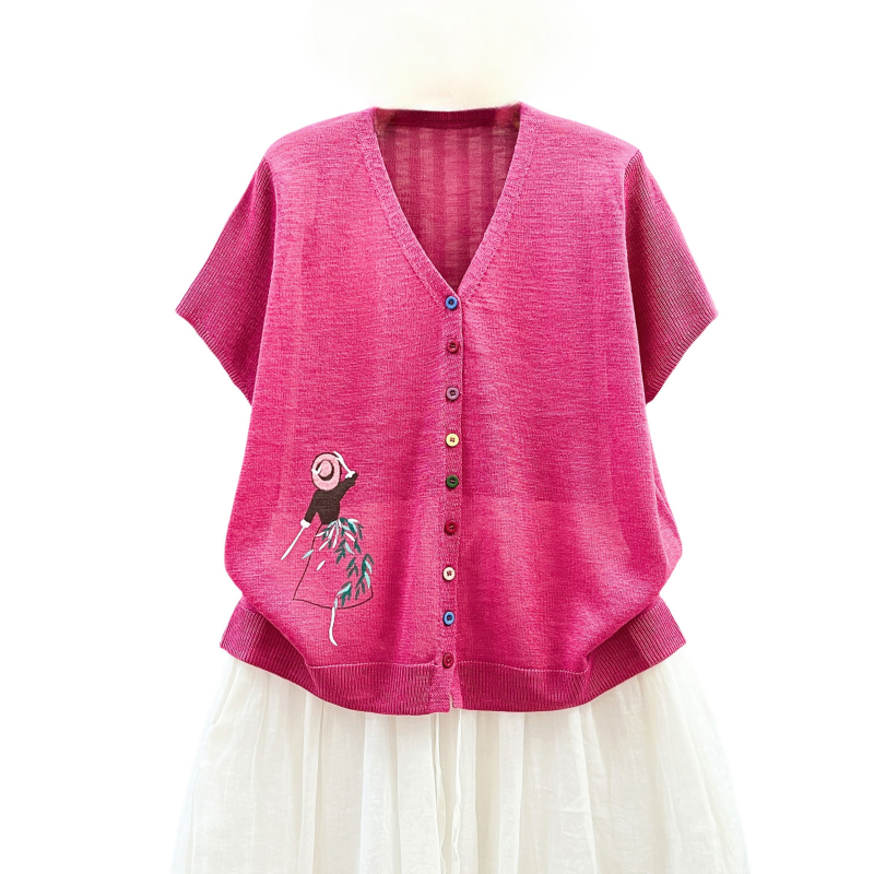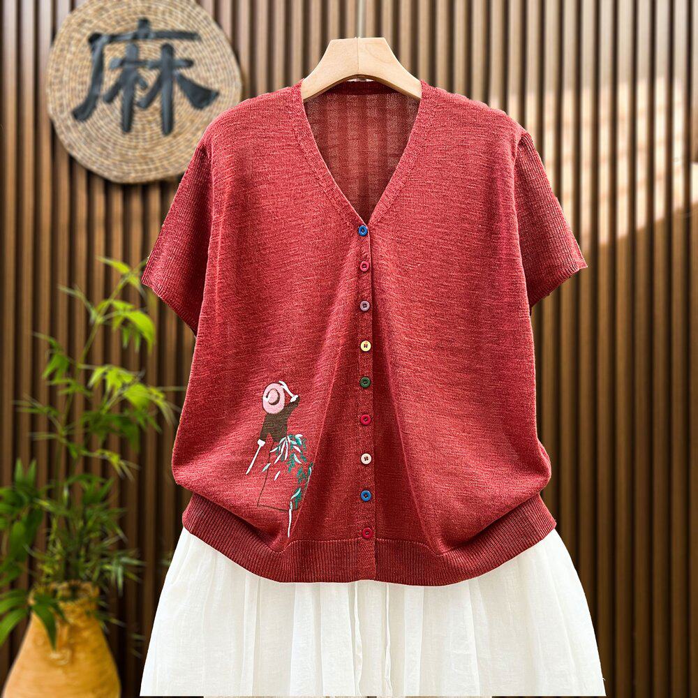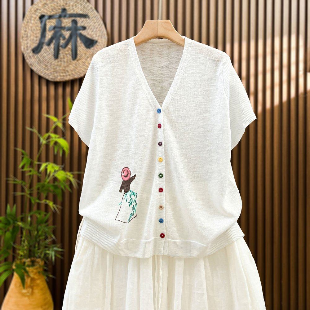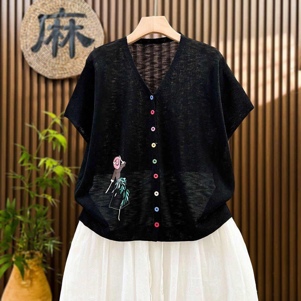 大码时尚竹节麻防晒空调衫针织开衫新款薄款女短款外搭夏季短袖