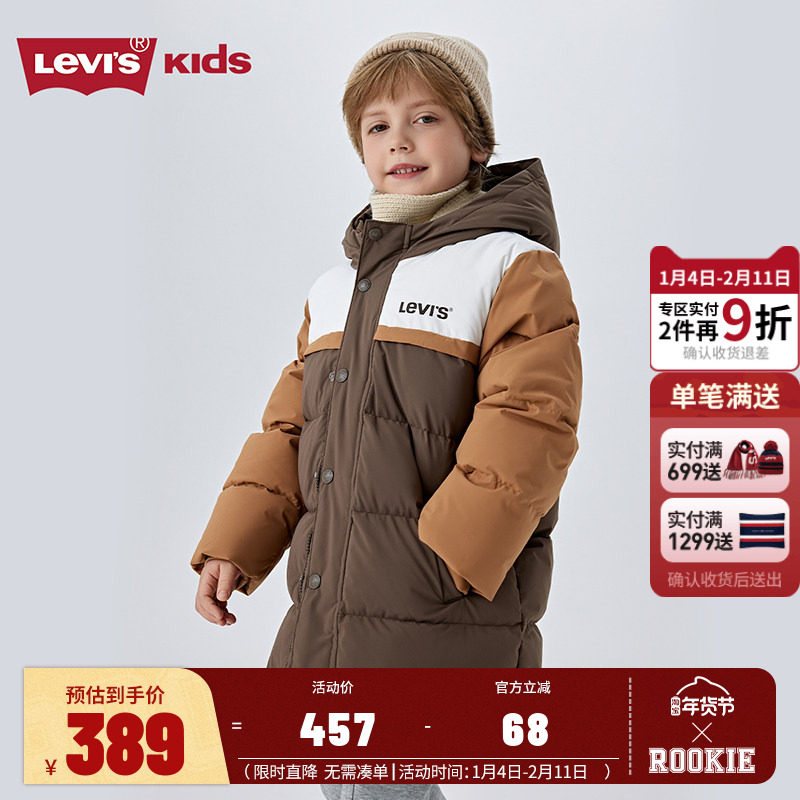 Levis李维斯儿童装羽绒服中长款2025冬季新款男女童棉服外套加厚