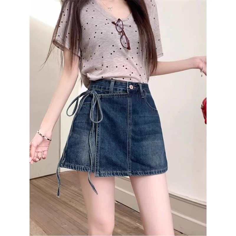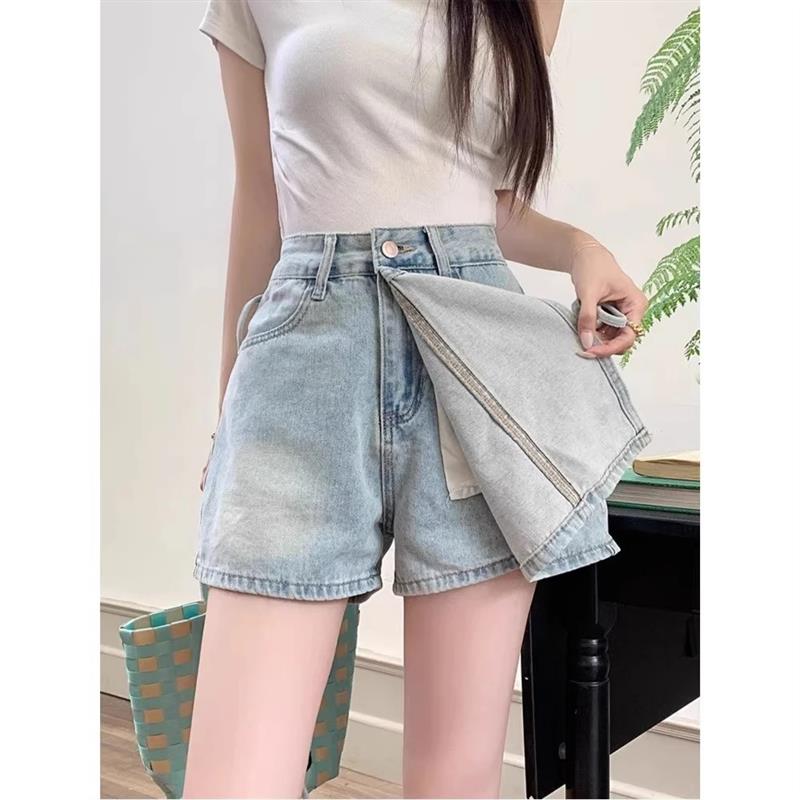 【晶晶】高腰牛仔短裤女大码女裤夏季显瘦百搭阔腿防走光a字裙裤