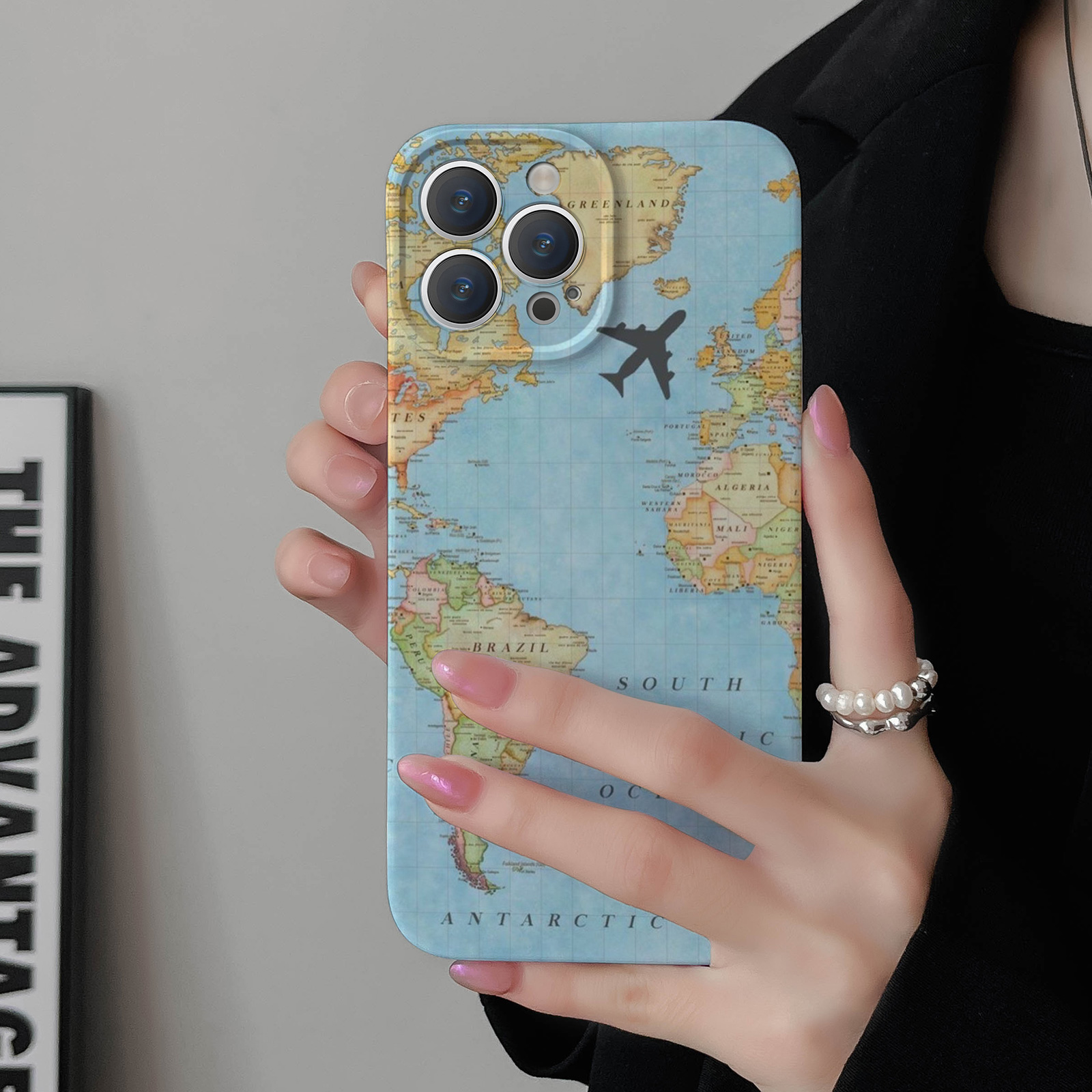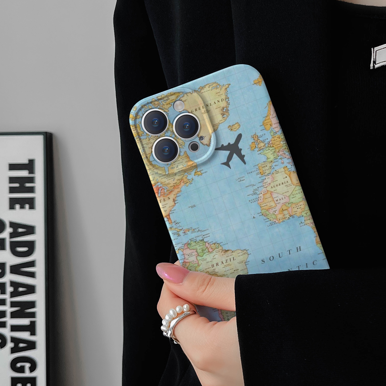 适用华为oppo苹果iqoo荣耀iphone17 15promax/16pro/14/13/12/mate70 60新款情侣手机壳plus世界地图英文飞机