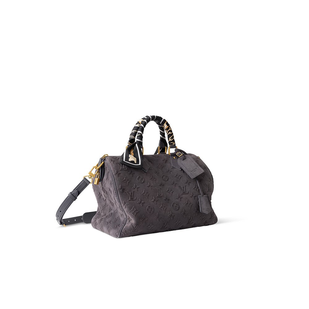 欧洲直邮LV路易威登 Speedy系列男士灰色牛皮老花图案单肩包