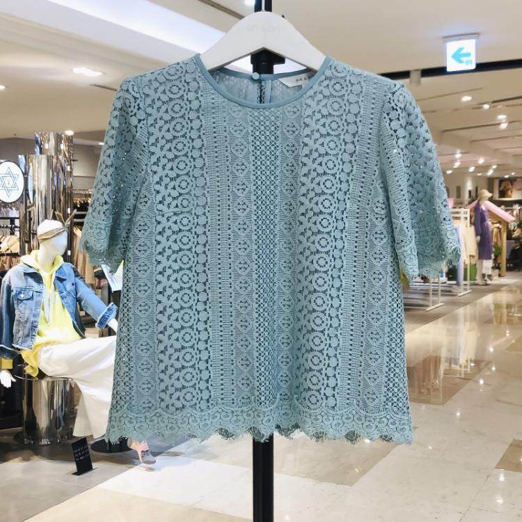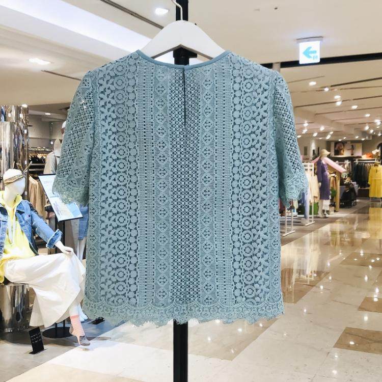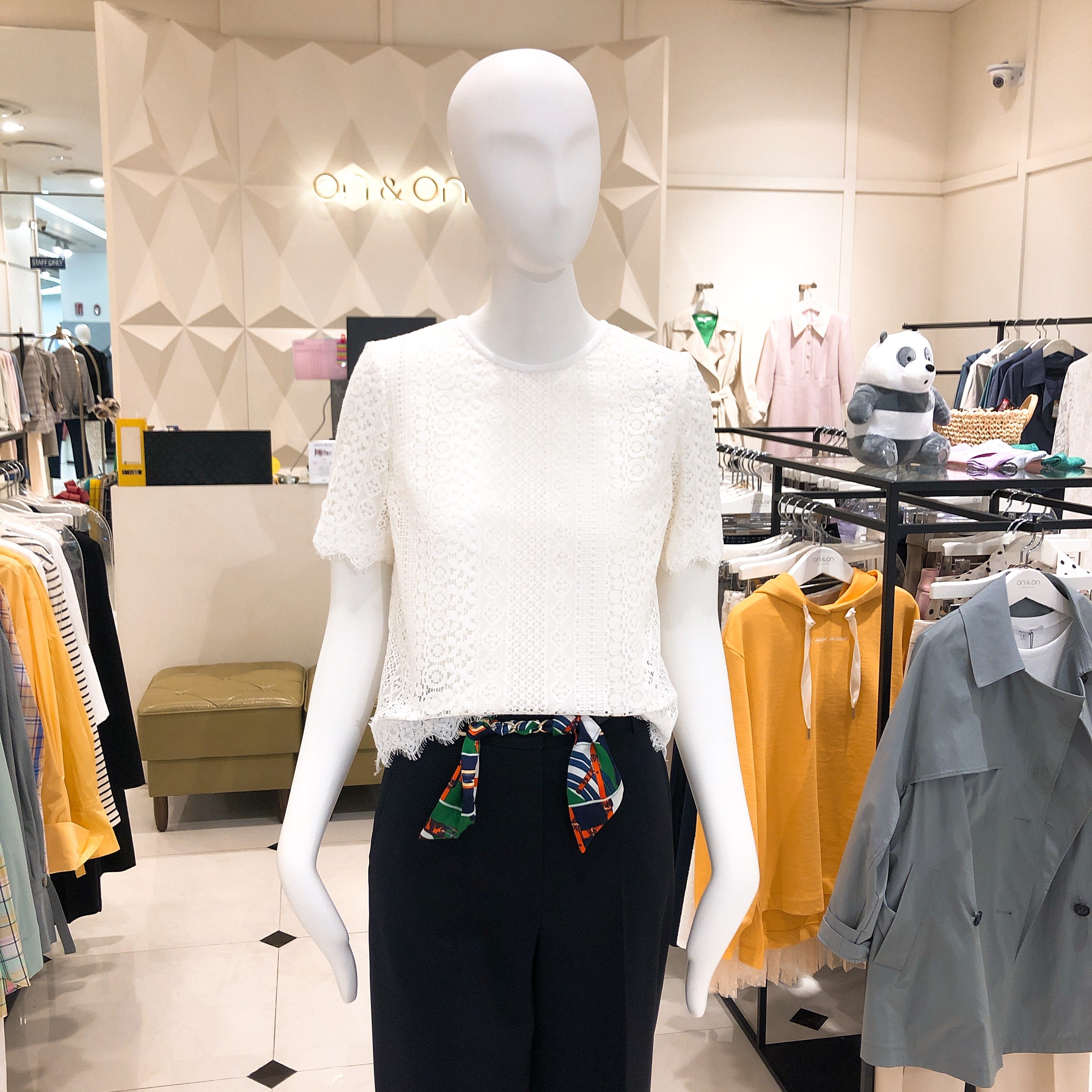 韩国onon安乃安 水溶睫毛蕾丝绣花纯色圆领衬衫蕾丝衫短款加小码