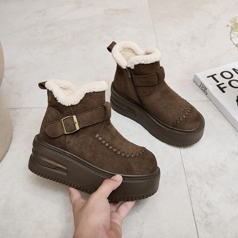 厚底雪地靴女6cm冬新款百搭加绒加厚保暖棉鞋小码松糕短靴毛毛鞋